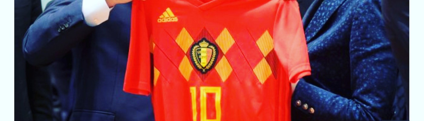 Mrs May touchingly pleased at being presented with Belgian No.10 HAZARD shirt as worn by Edin Hazard of Chelsea .