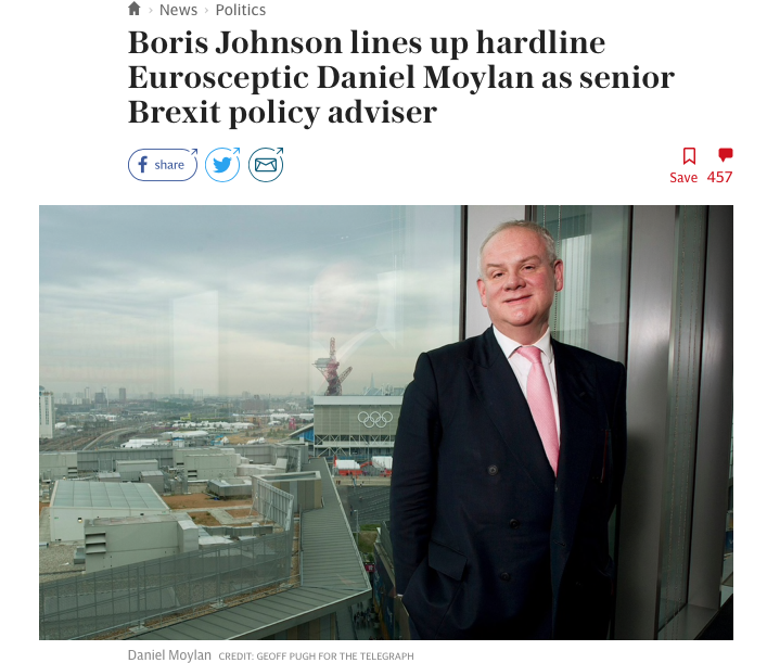 The border is never mentioned in the Belfast Peace Agreement . This claim is regarded by Brexiteers as an argument that trumps all else . Today brings the news that Johnson is putting the City Hall Band Back Together . Daniel Moylan is to be appointed as his Senior Brexit Adviser if, and when , he sets foot in No 10 . The news reminded me of a surprising and worrying exchange I had with Daniel last March on Twitter