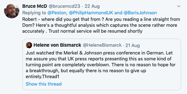 Day 4 continued with Duffer Davis on #R4Today to boost No.10’s current line – Johnson’s Breakthrough with Merkel .
